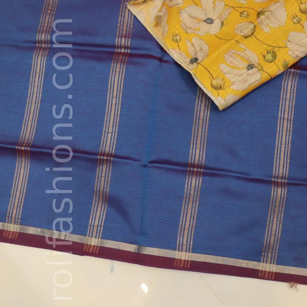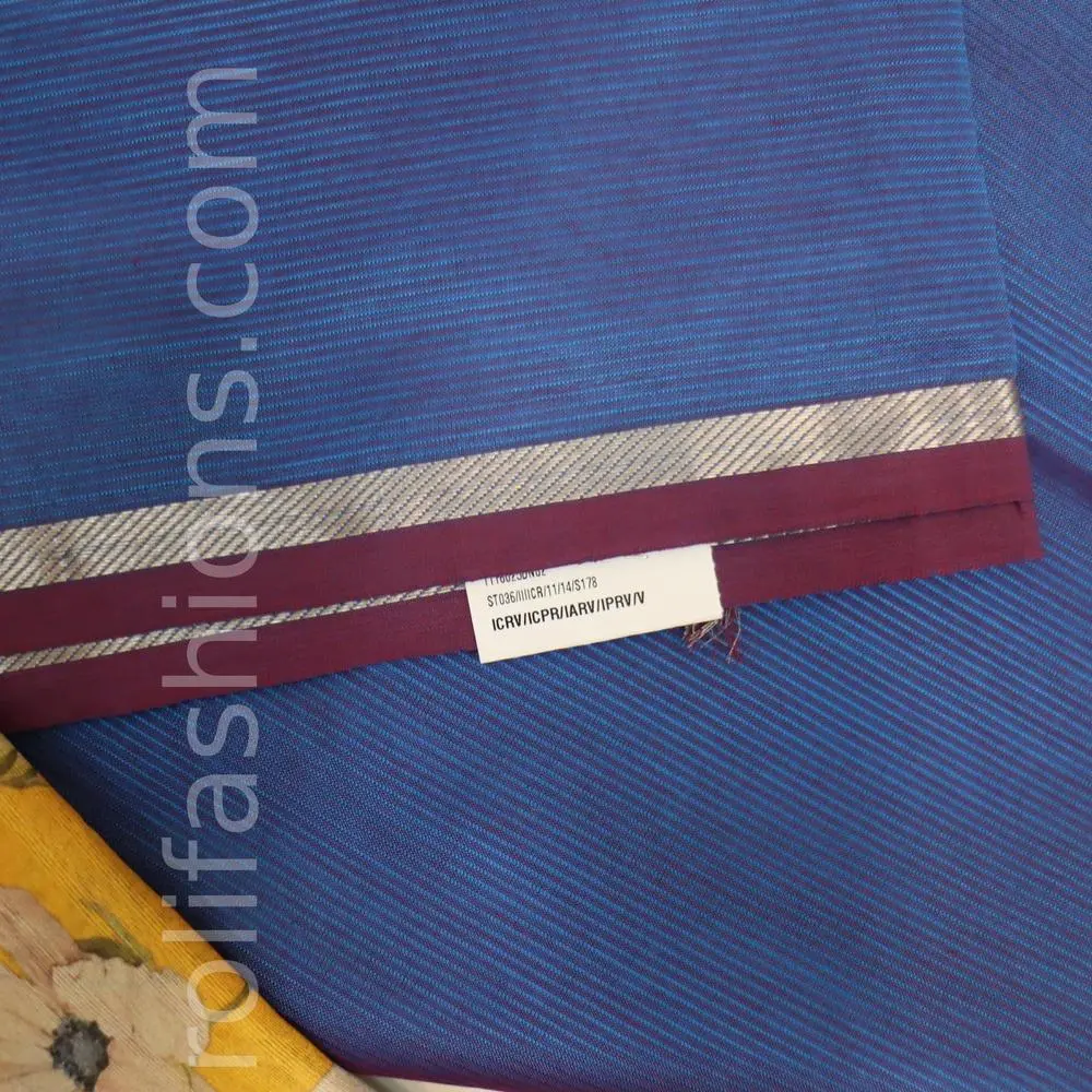 Mandalgiri pure silk sarees with two blouses - Ink blue with maroon border