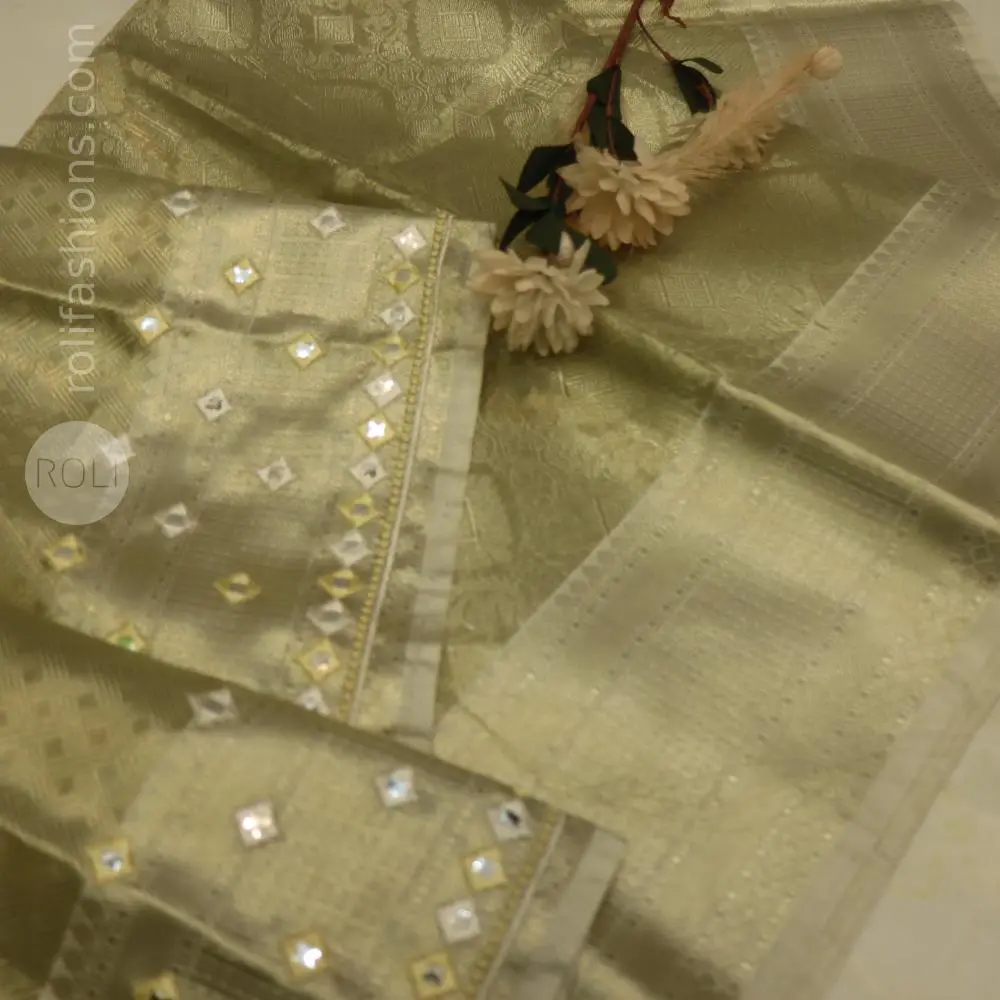 Banarasi silk saree in angel look - Sparkling Fairy halfwhite with goldish blend saree with designer bloused