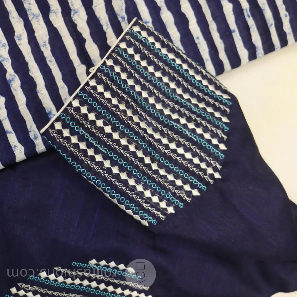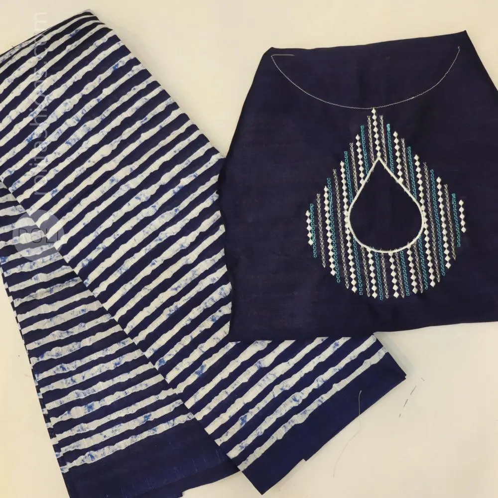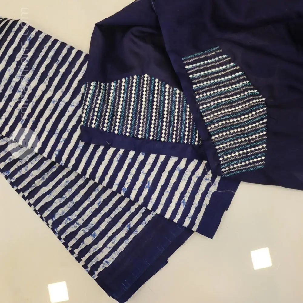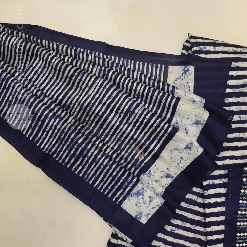 Zara Malgudi Tusser Sarees - Navy blue and white stripes tusser saree