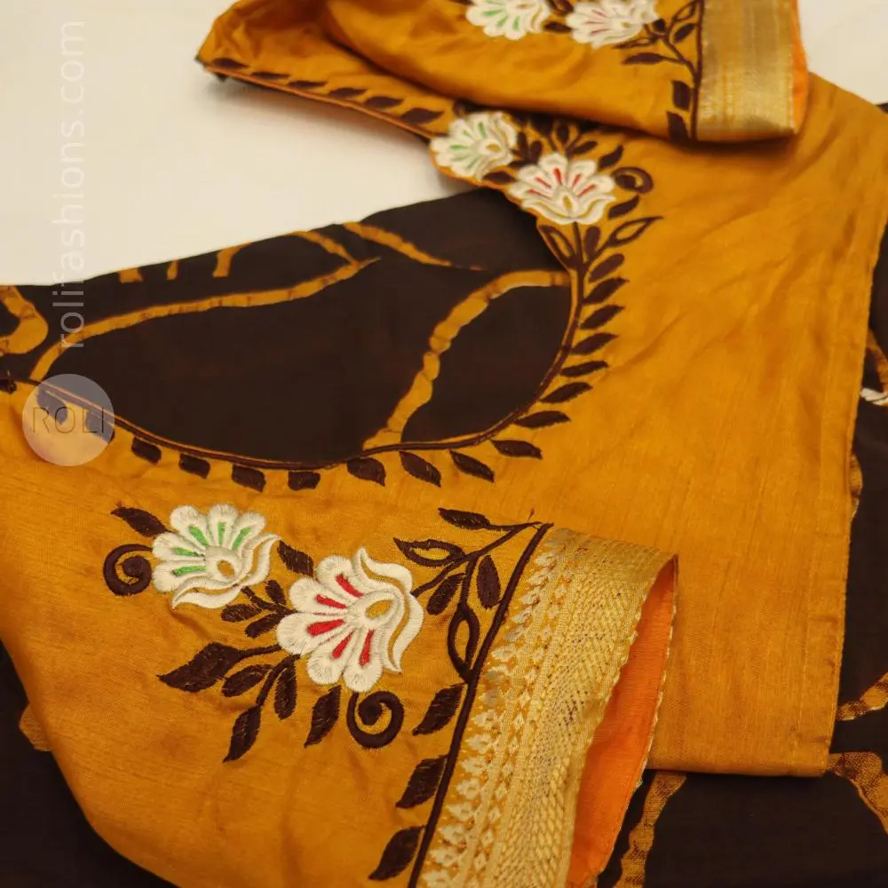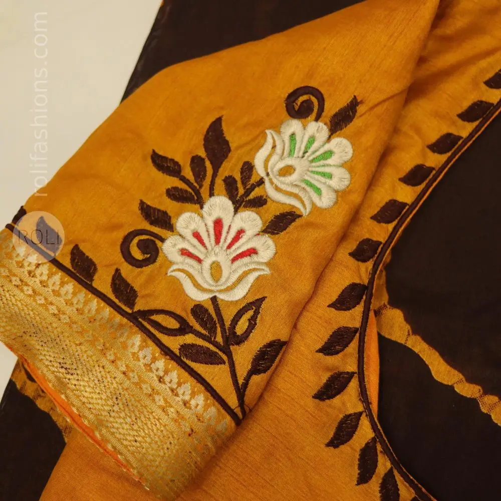 ✨ Earthy Elegance with Artistic Charm ✨ This beautiful saree and blouse set is a perfect blend of tradition and artistic expression. 🧡 Saree Details Rich brown base with a warm mustard tone border creates a striking earthy contrast Unique handcrafted-style abstract prints add a contemporary artistic touch The highlight is the charming bird motifs on the pallu, giving it a storytelling, nature-inspired appeal Finished with a subtle woven zari border for a hint of elegance 🌼 Blouse Details Stunning mustard blouse with intricate floral embroidery in white and multicolor accents Elegant round neckline enhanced with delicate leaf embroidery work Sleeves feature matching embroidered motifs and a neat zari finish for a polished look 💫 Overall Look A perfect choice for women who love art-inspired fashion with a traditional soul. Ideal for casual gatherings, office wear, or small festive occasions—effortlessly stylish and graceful. -
