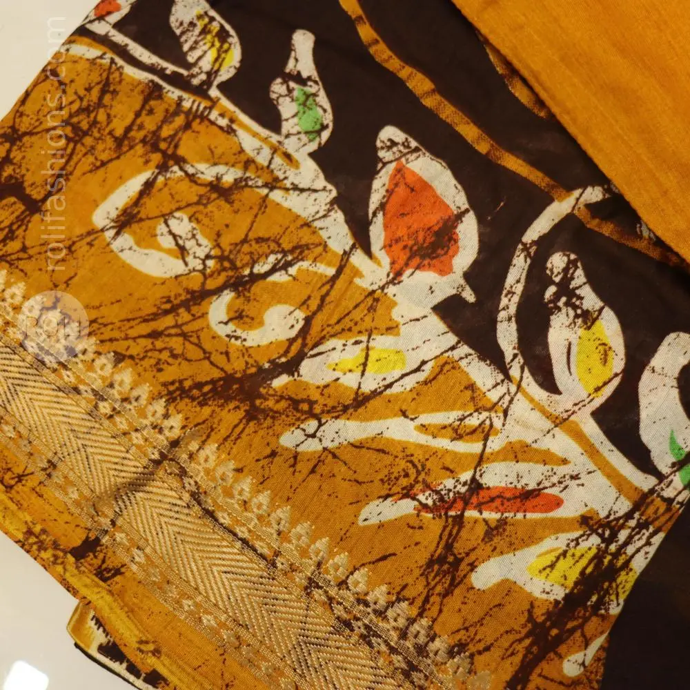 Coffee brown with mustard border - Overall Look A perfect choice for women who love art-inspired fashion with a traditional soul.
