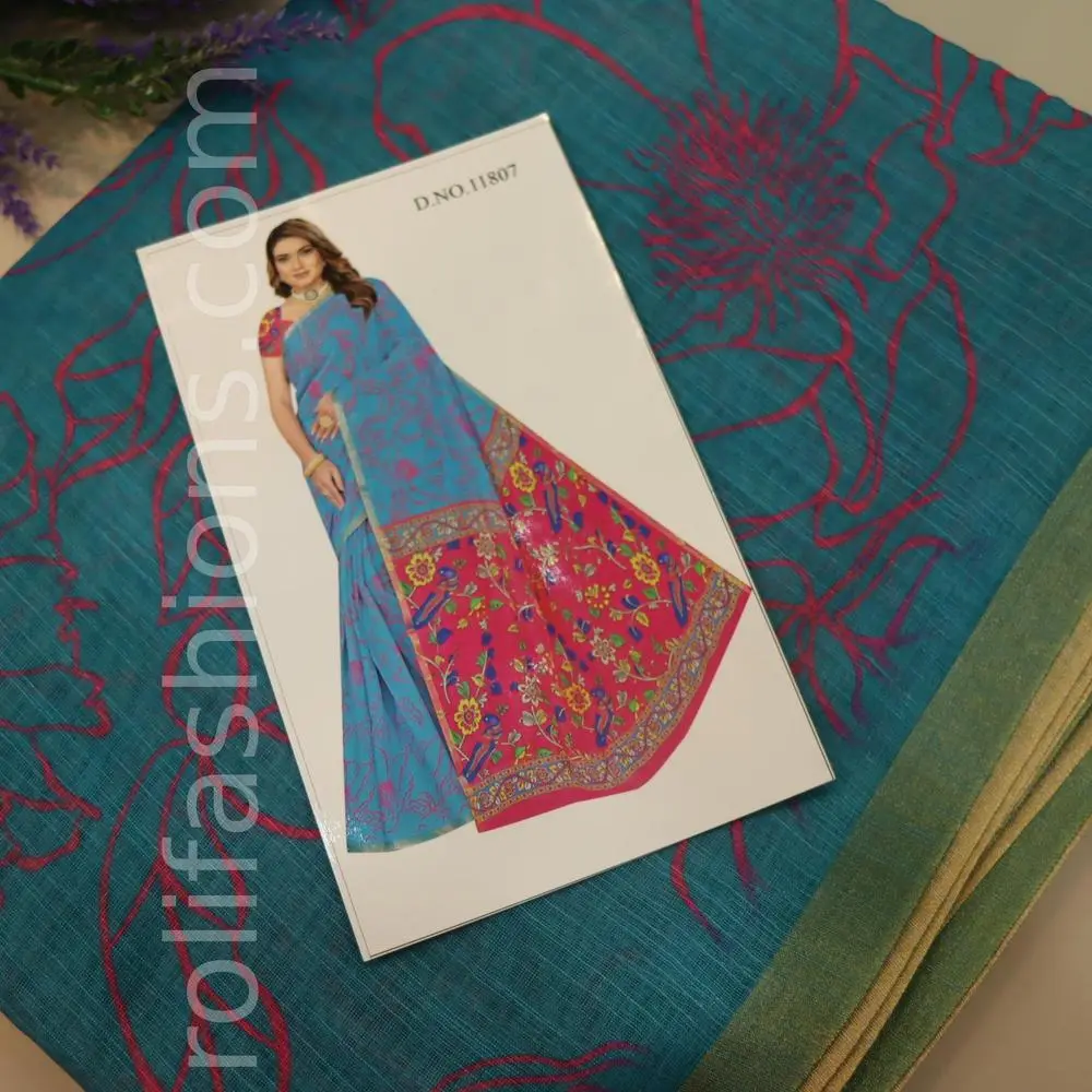 perfect for work wear and beyond. The highlight is the designer blouse printed with intricate flowral patterns which suits for the pallu, seamlessly matching the saree’s theme and elevating the traditional aesthetics. Comfortable and elegant for all-day wear ideal for office, casual events, or minimal celebrations Free shipping Affordably priced without compromising on style Let tradition meet comfort and class in your everyday wardrobe. -