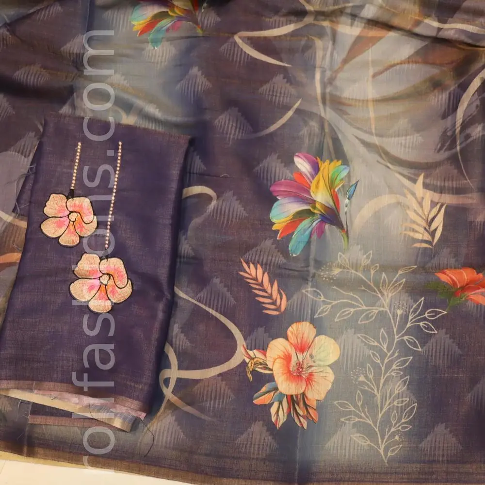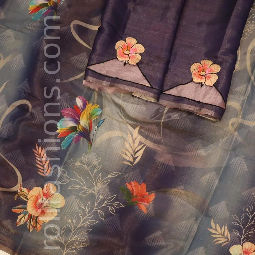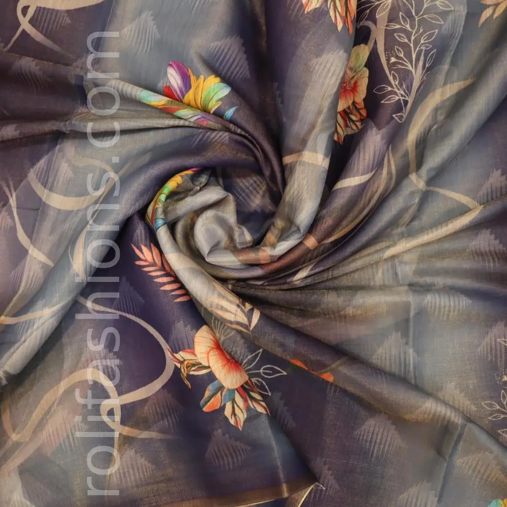 ✨ Shimmer Digital Floral Saree ✨ Experience the charm of elegance with our rusty brown shimmer saree, beautifully blended in three graceful shades of brown with a touch of soft pink. The saree comes alive with digital floral prints and an optimum, sophisticated shine — perfect for both festive and evening wear. The designer net blouse, unstitched for your perfect fit, features a high-neck design and is creatively cloned from the saree’s lower portion, adding a seamless designer finish. 💫 Affordable luxury with the perfect balance of shine, style, and sophistication — only at Roli Fashions. -