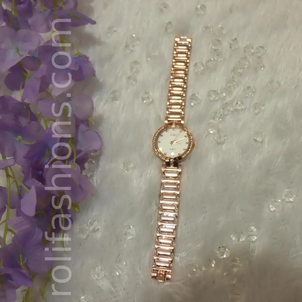 Elegant rose gold-tone case that gives a refined, contemporary appeal. Classic dial with coordinating rosegold metallic strap strikes a balance between chic and versatile. Quartz movement for reliable timekeeping. Ideal for workwear, formal events, or as a statement accessory to elevate a look. Why it fits with Roli Fashions & Working Women Style Since Roli Fashions is framing fashion for working women, this watch pairs beautifully with your aesthetic: The rosegold tone complements a wide range of work outfits , from sharp business suits to smart-casual sarees or dresses. Its minimalist classic design ensures it doesn’t distract but adds a subtle luxe touch. The strap colour options allow personalization and match the wardrobe versatility of a professional woman. From meetings to after-work events, this watch transitions seamlessly , aligning with the dual demands of style and functionality. -